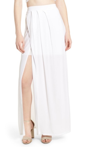 4SI3NNA Maxi Skirt, $95: This pleated, floor-length ivory skirt makes a statement with its slit up the leg and its airy silhouette. If you want to bring a seductive effect to your White Widow inspired ensemble, this just might be an ideal piece for your outfit of the day.