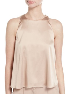 A.L.C. Jasper Sleeveless Open-Back Satin Blouse, $96: We are liking this silky sleeveless blouse with its ladylike high neckline. The pale blush colour is right on trend for Summer 2018, and can easily flatter your monochromatic, understated ensemble.