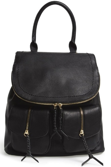 Sole Society Emery Faux Leather Backpack, $60: From dark wash denim to collared blouses and A-line dresses, a faux leather backpack can easily complete your look of the day. We are liking this Sole Society bag, which makes a statement with its metallic zippers and fringed detail.