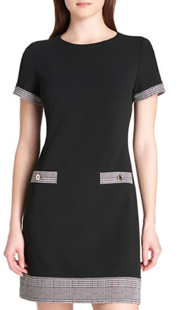 Tommy Hilfiger Jacquard-Trimmed Sheath Dress, $101: Sheath dresses never go out of style, and this season is no exception. With its black and white jacquard print sleeve trim and detail, this little black dress is appropriate for the shift in the seasons.