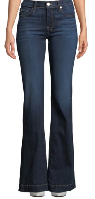 7 For All Mankind Dojo Flared-Leg Dark-Wash Jeans with “7” Pockets, $246: We are liking these flared jeans, which offer a 1970s inspired vibe with their wide bellbottom cut. With flares coming back into fashion, wide-legged denim just might help you channel your inner Emily Summerspring.