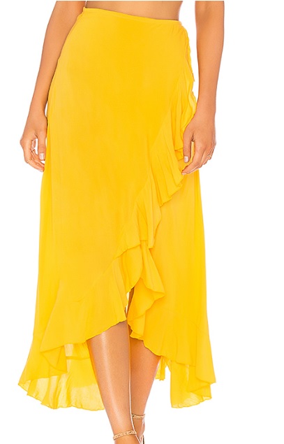 1) Indah Reese Wrap Skirt in Marigold, $125: We are liking this vibrant, rich yellow skirt which features ruffles and an asymmetrical hemline. Cardi B sports a similar, long skirt with a high-low hem in her video, and this versatile inspired piece can even help you capture her style long after the Halloween festivities have ended.