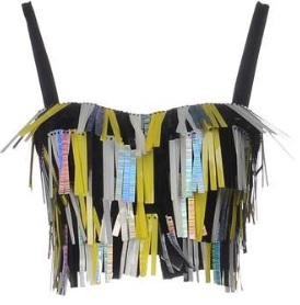 2) Simona Corsellini Sleeveless Top, $91: Try pairing your flirty, flowy skirt with an embellished corset top. This Simona Corsellini number offers a glamorous feel, with its tiny straps and its iridescent, multicoloured detail.