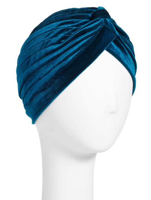 3) Asa Kaftans Velvet Turban, $65: For a finishing touch, try topping off your look of the night with a stylish turban in a bright blue tone. This velvet headpiece makes a statement with its dark teal colour, ruched detail and shimmery fabric.