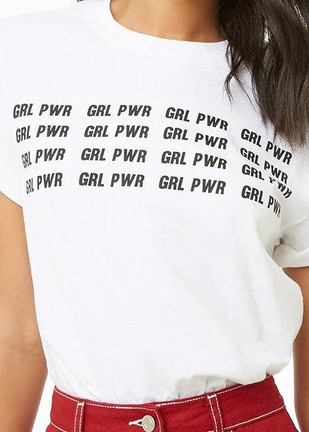 GRL PWR (a.k.a. girl power) gear is taking a stand in our closets. Graphic tees, accessories, and footwear, feature the power-full slogan, that has us reminiscing about those days when we knew Victoria Beckham as Posh Spice. Girl power!