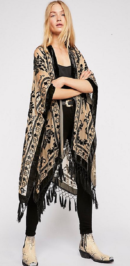 Free People Nightbird Burnout Kimono, $118: And for when the sun goes down, you will be wishing you brought a kimono to wrap yourself in. Bonus: this kimono comes in four colour choices—yellow, red, silver, and black (pictured).