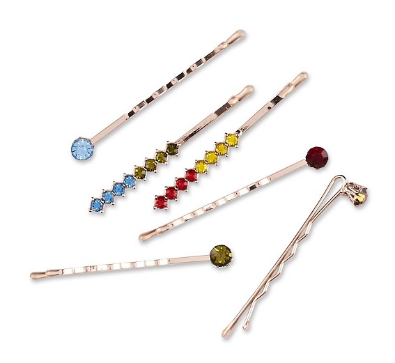 Sincerely Jules by Scunci Bobby Pins with Rainbow Stones, $11: Wear this 6 pack all together (like stacked colours of the rainbow), whether your hair is down or up in a ponytail.