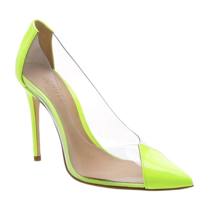 House of CB Ella Neon Green Ruched Organza Mesh Mini Dress, $182, & Schutz Cendi Neon Vinyl Leather Pumps, $228: All eyes on you…show off sun-kissed shoulders and stems with this figure-hugging dress. The transparent pumps with their neon pointed toes and heels, are made for commanding the attention of envious onlookers.