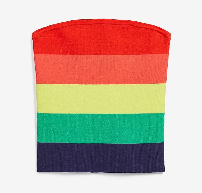EXPRESS Love Unites Striped Rainbow Sweater Tube Top, $40: This classic tube top style may be a throwback to the 70s, but the message behind it (‘Love Unites’) is so now.