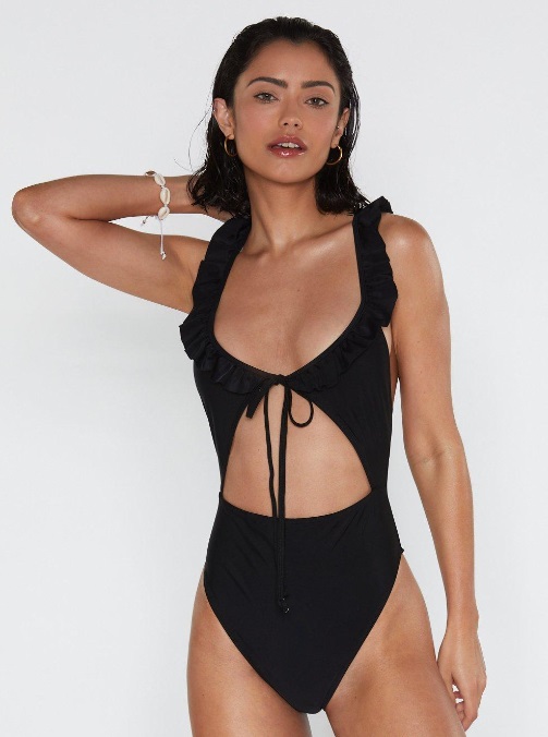 Pool Me Down Ruffle High-Leg Swimsuit, $30: Long live the one-piece…although, with a V-neckline, high-leg fit, and cut-out torso, this one is barely there. But technically still a onesie.