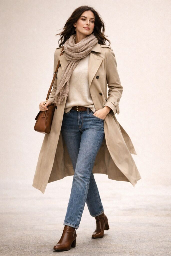 Think about the pieces that bridge seasons effortlessly. A classic trench coat — preferably in a neutral tone — works beautifully over a midi dress on a breezy day or layered atop a cashmere sweater and jeans as temperatures cool. Denim jackets and leather bombers are also indispensable: sturdy enough to fend off a chill but light enough to avoid overheating in midday sun.