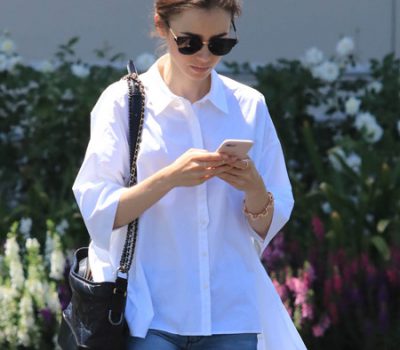Lily Collins Rocks The Classic White Blouse With Jeans