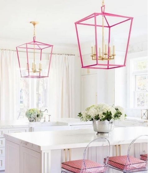 Revamp your kitchen with pale pink stools and dangling pendant lights: For a kitchen which needs a dose of colour, turn to candy pink and Lucite bar seats for a ladylike take on the look. While you’re redecorating, don’t forget to use bright pink pendant lamps, flawless white countertops and airy sheer curtains to truly flatter your interior design.