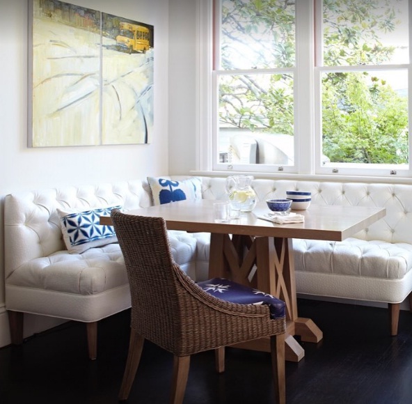 Accessorize with blue and white for a country inspired look: Even if you reside in bustling downtown, the look of splashy blue and white floral prints can usher country charm into your space. Place the pillows on plush white sofas, and contrast the rustic shades against wicker accents and a classic wooden table.