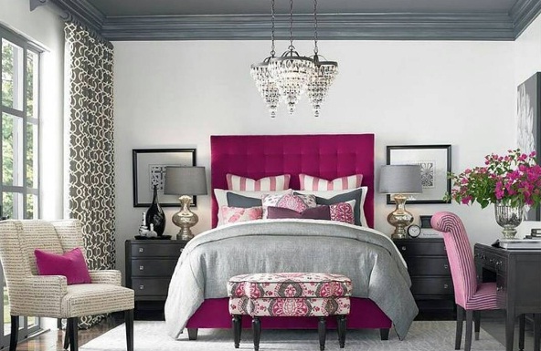 Use pink and white for a girlish effect: Try adorning your bedroom with accent cushions in shades of soft white and pale pink, with stripes for a preppy feel. As for the rest of your chamber, stick to a gorgeous magenta and grey colour scheme for a chic contrast.