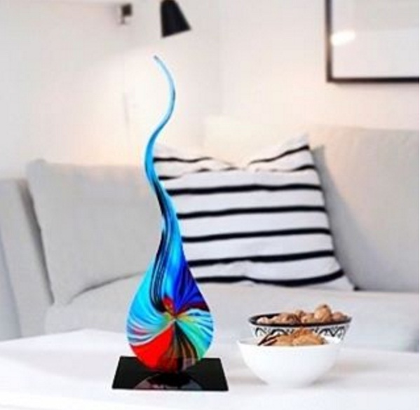 Use a multicoloured sculptural vase for a pop of colour: If your living room is currently an expanse of white and grey neutrals, a funky vase can inject colour and a fun-loving attitude into a stark space. Turn to an artisan sculptural creation crafted out of glass, and consider blue, red and green hues for the ultimate splash.