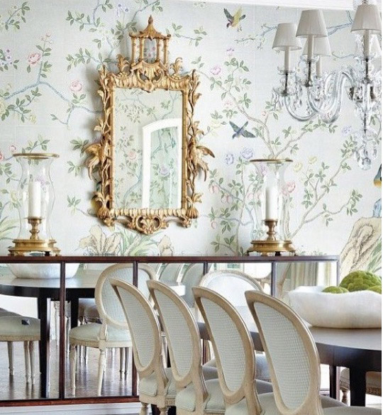 Creative souls tend to surround themselves with whimsy and art, and their personal spaces should be no exception to this rule. Draw your inspiration from the past, with vintage themed bird wallpaper in subtle pastel hues. The cheery avian print can pair nicely with an elaborate gold framed mirror and white hanging lamps, for a room which makes an instantly welcoming first impression.