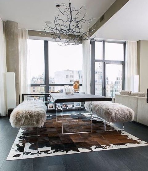 Transform a rustic space with an acrylic and wood table: As an understated trend, acrylic furniture can instantly bring a moderate and modern effect to any space. To decorate a living room which is currently bedecked with shaggy furs and creamy sheer curtains, use a dining table with a wooden top and acrylic legs. The juxtaposition of crystal clear acrylic and dark wood creates a glamorous look.