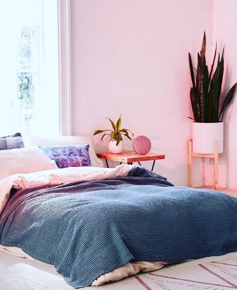Transform your bedroom with a candy pink accent wall: For a colourful statement which will bring your chamber into Spring 2017, the key is to think pink. Update your bedroom with a vividly painted accent wall in a confectionery shade of pink. For a finishing touch, blush pink sheets and a blue and violet comforter can capture the candy inspired colour palette in your bedroom.