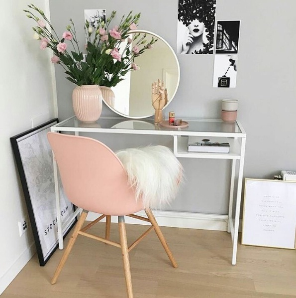 Elevate your home office: For those who work from home, the study or home office is an essential part of the home. As opposed to staid, corporate tones of white and beige, pale dogwood is the perfect touch. Decorate with a slender plastic chair in this subdued pink hue, along with pale pink roses in a matching ceramic vase.