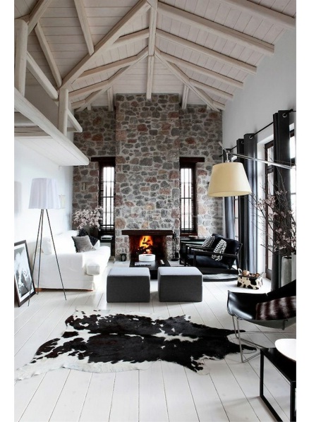 Exposed beams: For a rustic touch which will instantly evoke the feelings of a cozy farmhouse, try turning to exposed beams for a statement look. Replenish your living room with beige or neutral-coloured exposed beams, and pair the beams with brick walls and white-painted wooden floorboards. Try painting your living room walls white and turning to stark black and white furniture.