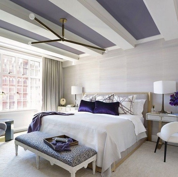 Mauve and white: If you’re looking for a pop of colour, look no further than contrasting segments of mauve and white. A pastel-painted ceiling can easily illuminate your master bedroom and bring a pop of colour to your space. Meanwhile, a violet and white colour palette can easily flatter the tones in your space, and bring the focus to your pale purple ceiling.