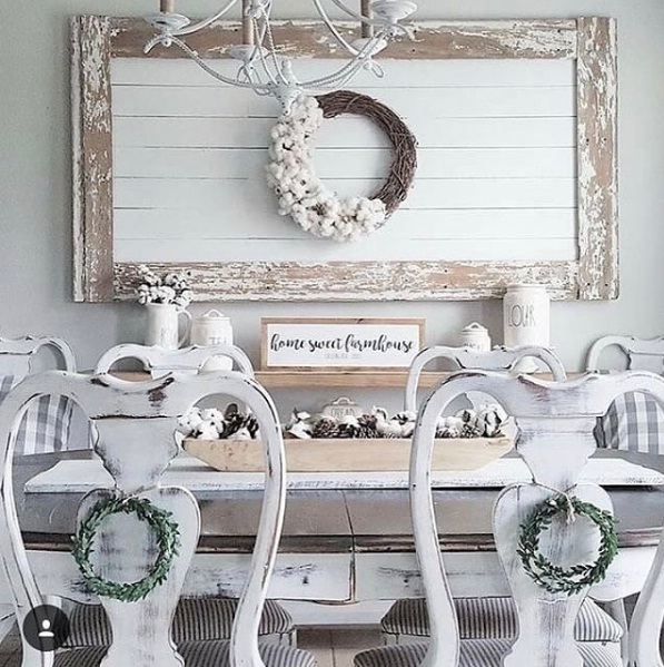 Get rustic: This season, look no further than the rustic and quaint beauty of the countryside as you decorate your beautiful home. This Instagram snapshot reveals a chic setting created with salvaged wood. From a wooden sign to woven wreaths and a white-painted table, turn to farmhouse chic for your design inspiration.