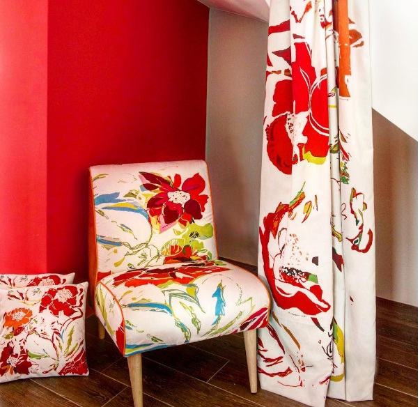 The grandma couch: There’s nothing like a grandma couch to transform a front porch or front room into an artistic escape. We are loving this particular example, which features brightly coloured red, white and blue blossoms on red upholstery. To truly allow the flowers to pop, turn to a crystal or glass vase filled with fresh roses and tulips.