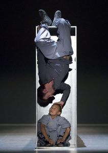AT: Yes, this was why Larbi hired me. He knew he was planning to work with the boxes with Antony Gormley, and he knew in the circus world that everything on stage can be used as a tool; as an apparatus. We are also more fearless than other traditional dancers, so I am always looking to include new small stunts in the piece without removing from the overall journey of the dance that Larbi has created.