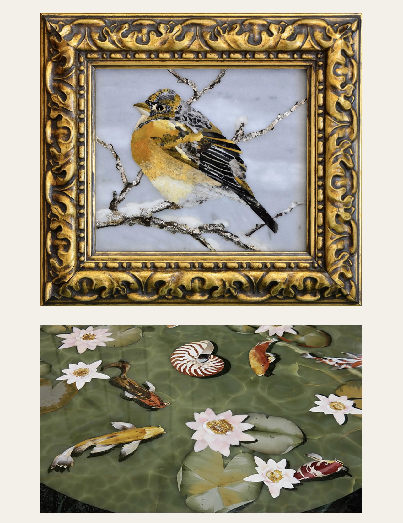 Photos – Pitti Mosaici The art of Pietra Dura- inlays of semi precious stones- flourished with the Medici family of Florence. Intricately hand carved